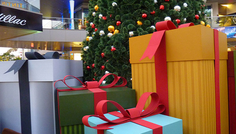Santa Monica Place - Larger than life branded Holiday gifts accompany a majestic tree and star which lights up like a beacon. next project >>>
