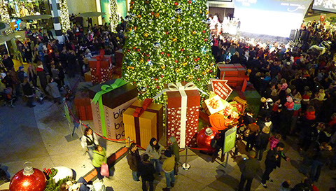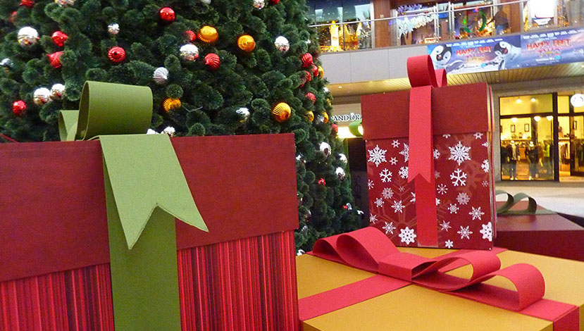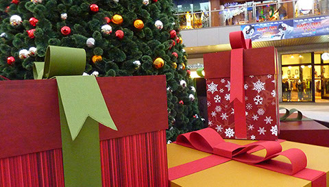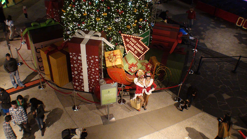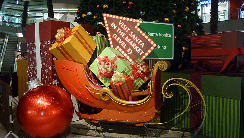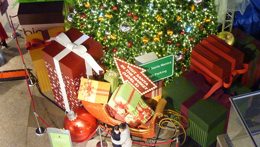 Santa Monica Place - Larger than life branded Holiday gifts accompany a majestic tree and star which lights up like a beacon. next project >>>